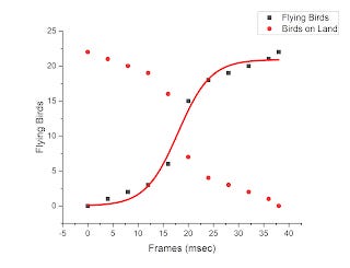 You can see in the figure the fitting of the number of flying birds as a function of time using a logistic function.